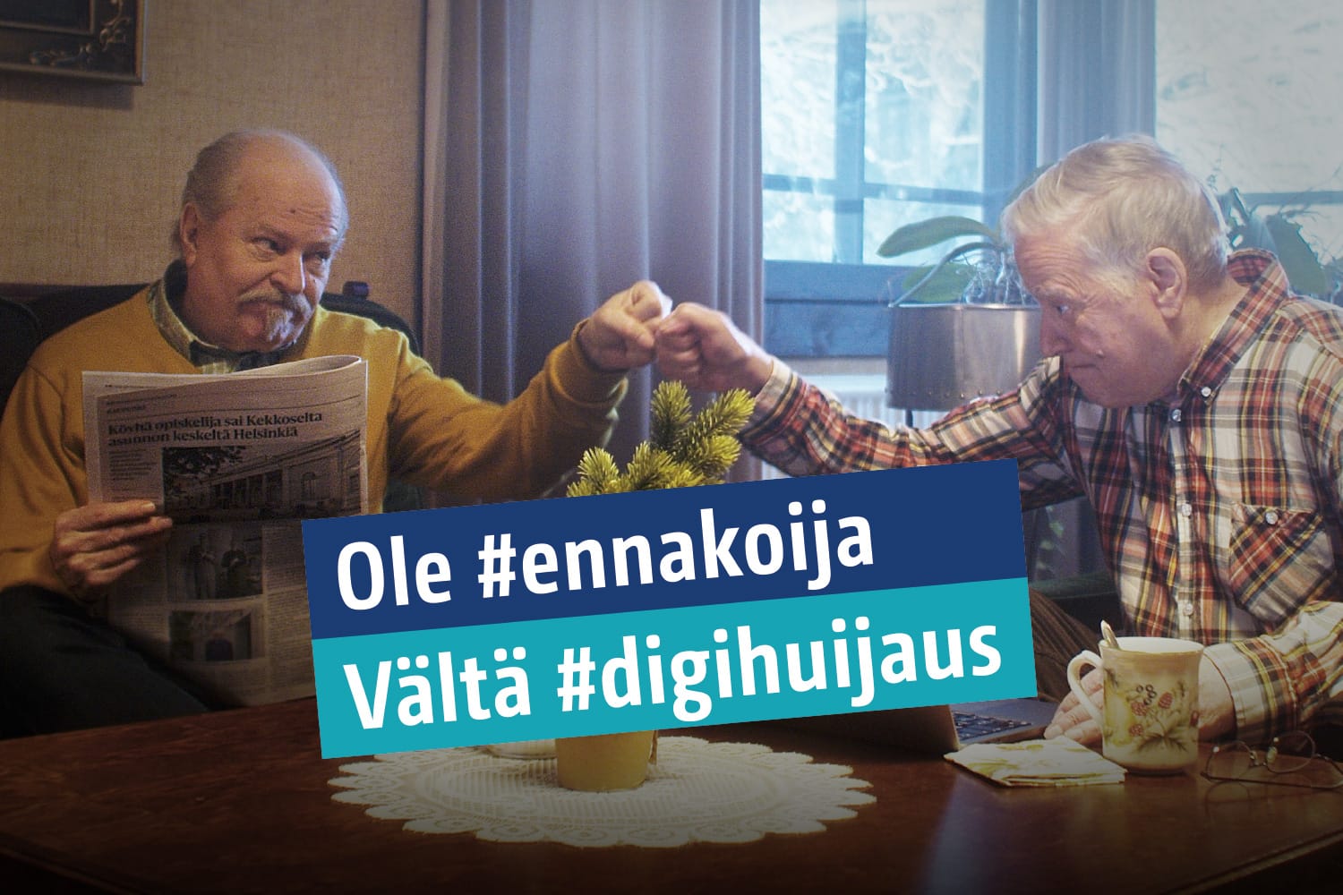 ikaantyneet-kaverukset-iloitsevat-ja-iskevat-nyrkit-yhteen-sohvapoydan-aaressa-ennakoija-kampanjateksti-suomeksi.jpg